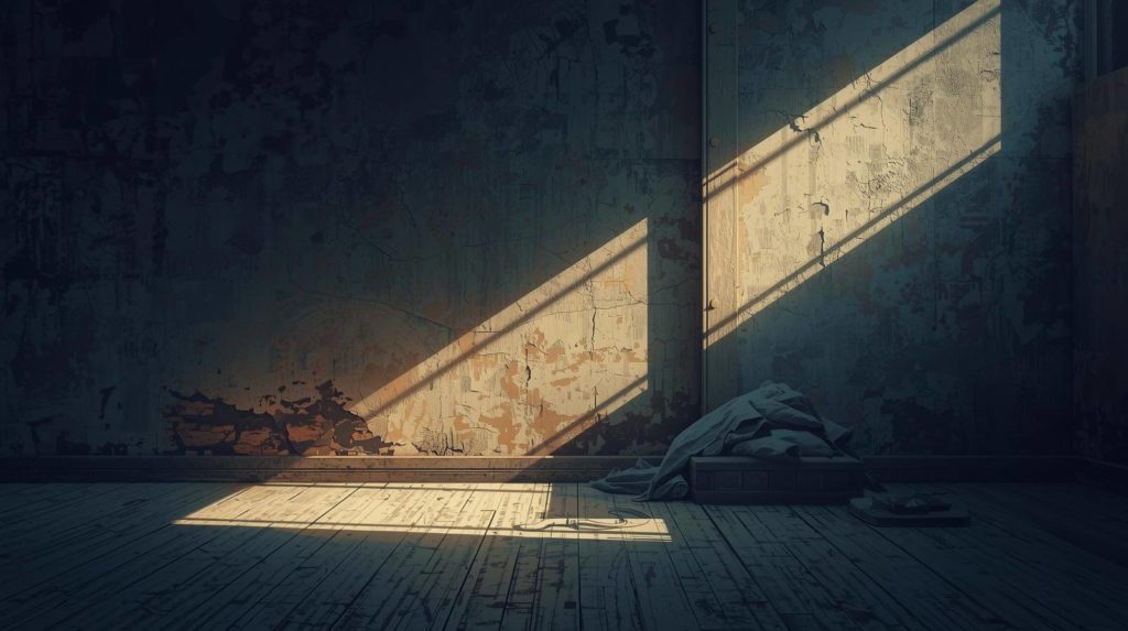 光と影をしっかり描き分けると、背景に立体感が生まれ雰囲気も出せます。まずは光の方向(光源)を決めることが大切です。ラフ段階で「どこから光が当たって、どこに影が落ちるか」をざっくり描き込んでおくと良いでしょう。