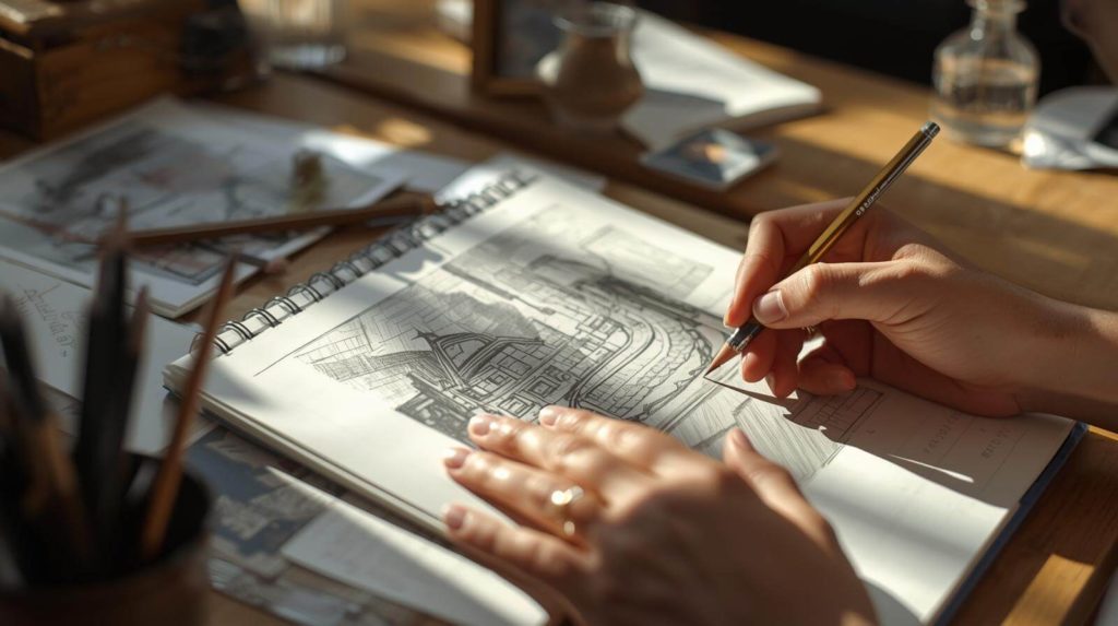 最初は写真を模写して練習するのがおすすめです。風景写真や自分で撮った街の写真を見ながらスケッチすることで、パースや構造、自然物の形を学べます。