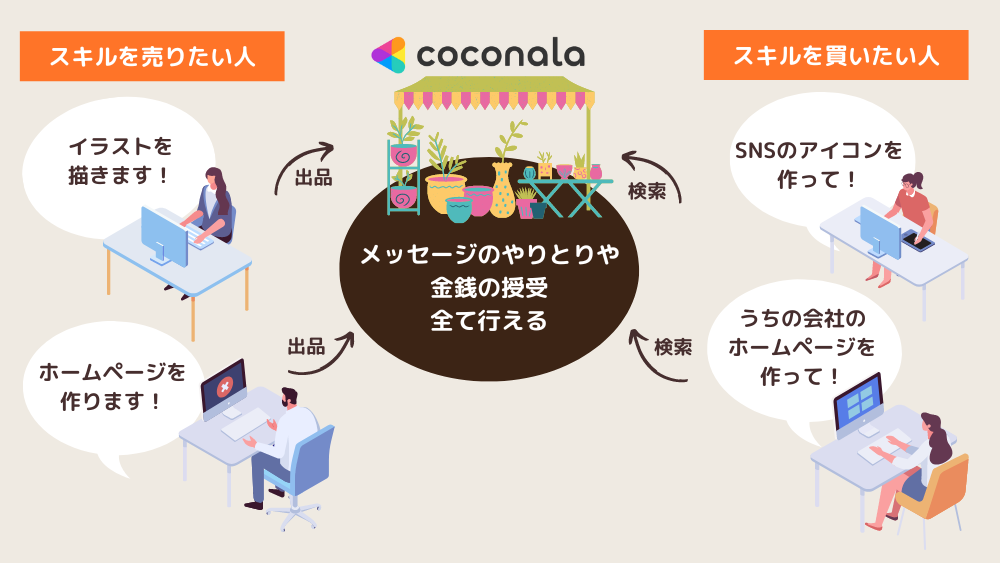 複数スキルを持っている人or複数スキル習得を目指している人イラスト以外のスキルも持っている人にとっては、複数スキルをまとめて出品できるココナラは相性が良いです。