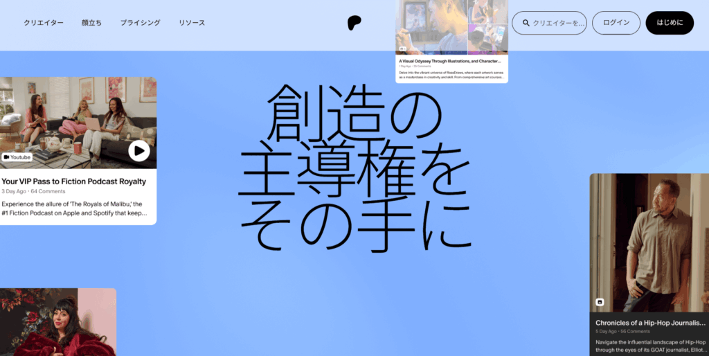 Patreon(パトレオン)はアメリカ発のクリエイター支援・ファンコミュニティプラットフォームです。